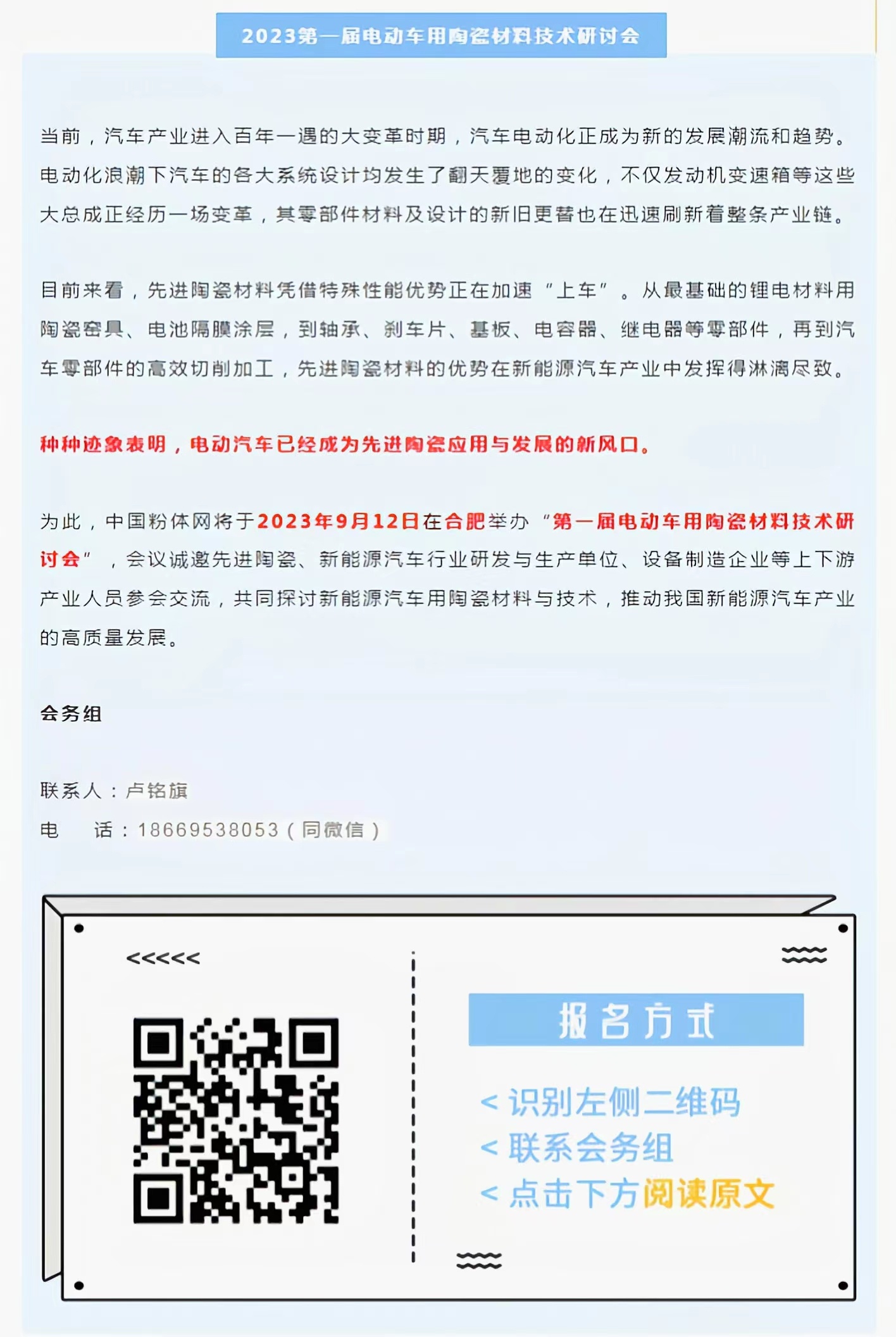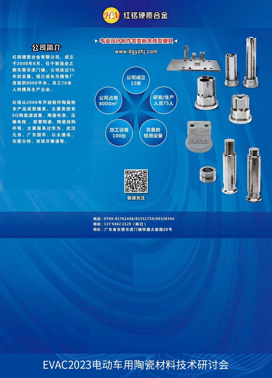 從第一屆電動車用陶瓷材料技術(shù)研討會組委會獲悉,本屆會議將于2023年9月12日在合肥舉辦。東莞市紅銘硬質(zhì)合金有限公司作為參展單位邀請您共同出席。