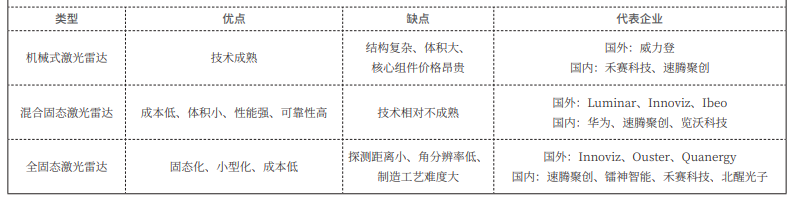不同技術(shù)路線激光雷達(dá)優(yōu)缺點(diǎn)