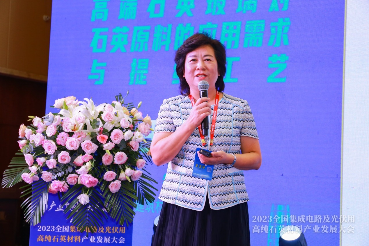 中國建筑材料科學(xué)研究總院石英與特種玻璃研究院教授級高工王玉芬作《高端石英玻璃對石英原料的應(yīng)用需求與提純工藝》報告