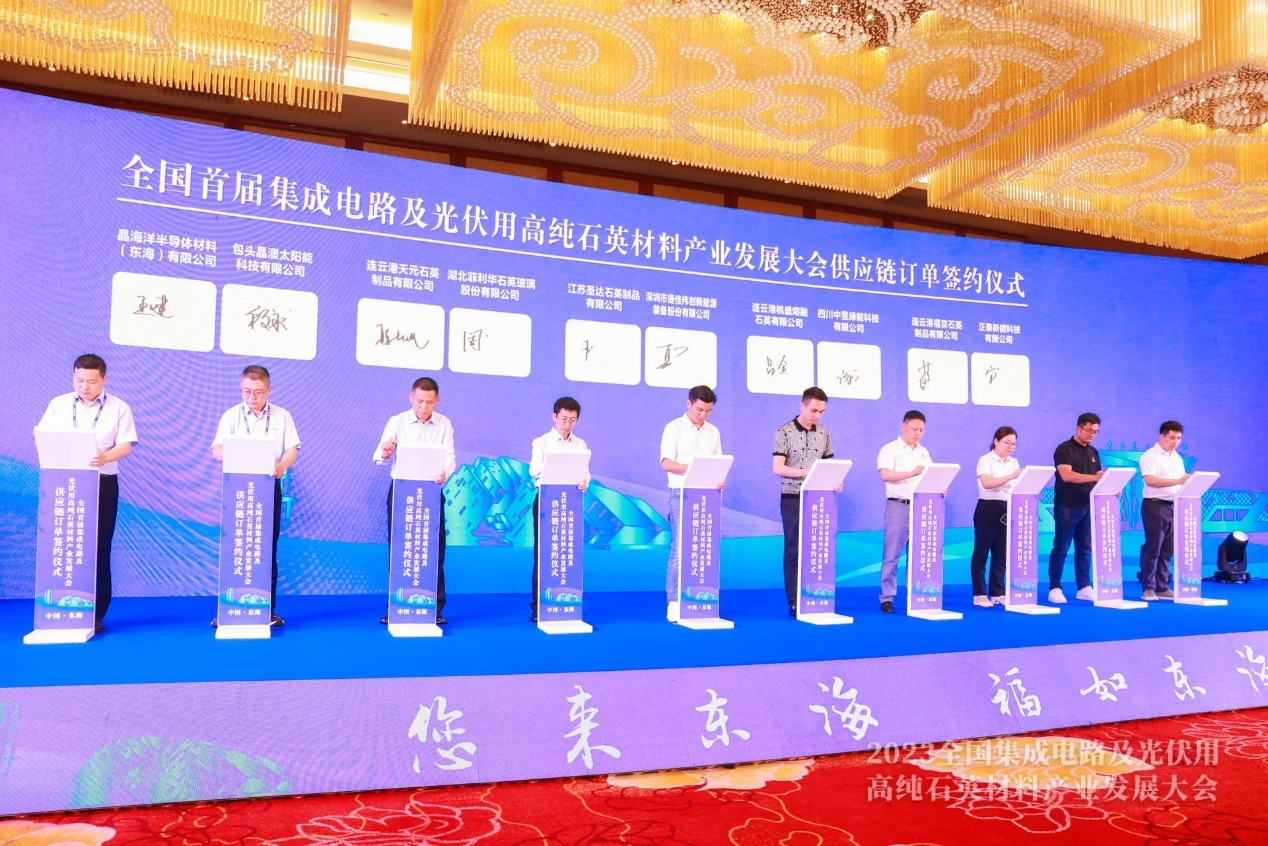 9月14日晚,東?h政府舉辦了“產(chǎn)業(yè)中國 大美晶都”接待晚宴。晚宴主要分為兩部分。第一部分為會議環(huán)節(jié),由東海縣縣委副書記、縣長張其兵主持,連云港市副市長、縣委書記宋波致辭,薛劍副縣長推介東海;企業(yè)供銷合同集中簽約。第二部分是餐敘環(huán)節(jié),主辦方組織了現(xiàn)場互動活動和精彩的文藝表演,為高純石英材料產(chǎn)業(yè)的發(fā)展送上祝福。赴宴人員相互交流,各抒己見,宴會現(xiàn)場歡歌笑語!