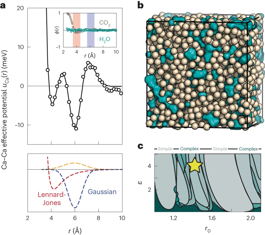 中國粉體網(wǎng)訊 9月25日,牛津大學化學系Volker L. Deringer副教授和Andrew L.Goodwin等人,通過使用高質(zhì)量的原子模型來模擬無定形碳酸鈣的結(jié)構(gòu),提取了控制結(jié)構(gòu)的有效鈣離子(Ca2+)之間相互作用的勢能,并發(fā)現(xiàn)無定形碳酸鈣的復雜結(jié)構(gòu)和抵抗 結(jié)晶化的特性實際上是由Ca2+離子之間的幾何受限的有效相互作用所編碼的。相關(guān)論文以Geometrically frustrated interactions drive structural complexity in amorphous calcium carbonate為題,發(fā)表在Nature chemistry期刊上。第一作者是牛津大學化學系的Thomas C. Nicholas。