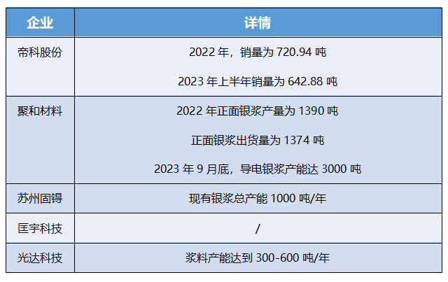 光伏銀漿主要由高純度的銀粉、玻璃粉、有機原料等成分組成。它是制作光伏電池片電極的關(guān)鍵材料,是光伏電池片的第一大輔材,同時也是除硅片外,成本占比第二大的光伏材料。據(jù)相關(guān)預測,2023年全球銀漿需求量合計超4500噸,2024年將繼續(xù)增加1000噸左右需求,達到5500噸以上。