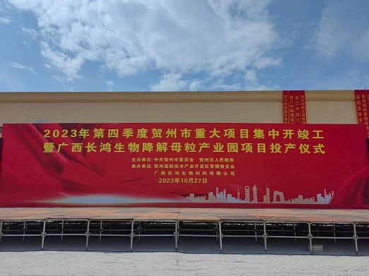 10月27日,2023年第四季度賀州市重大項(xiàng)目集中開竣工暨廣西長(zhǎng)鴻生物降解母粒產(chǎn)業(yè)園項(xiàng)目投產(chǎn)儀式舉行,由長(zhǎng)鴻高科投資、總金額達(dá)30億元的“長(zhǎng)鴻生物降解母粒產(chǎn)業(yè)園項(xiàng)目”正式投產(chǎn)。該項(xiàng)目將實(shí)現(xiàn)年產(chǎn)量100萬噸高端改性碳酸鈣、120萬噸功能母粒一體化項(xiàng)目、10萬噸可降解制品及農(nóng)用地膜,達(dá)產(chǎn)后新增年產(chǎn)值超過100億元,不僅有助于公司進(jìn)一步提高可降解塑料產(chǎn)品的質(zhì)量,增強(qiáng)碳酸鈣成本、供應(yīng)穩(wěn)定性,同時(shí)也將帶動(dòng)當(dāng)?shù)厝丝诰蜆I(yè)增收,推動(dòng)當(dāng)?shù)禺a(chǎn)業(yè)結(jié)構(gòu)優(yōu)化升級(jí)及產(chǎn)業(yè)創(chuàng)新能力提升,朝循環(huán)綠色發(fā)展、特點(diǎn)鮮明的特色優(yōu)勢(shì)產(chǎn)業(yè)集群方向發(fā)展。