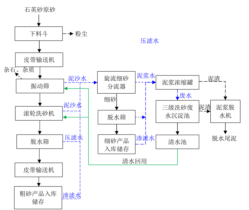 項目石英砂酸洗生產(chǎn)工藝流程圖