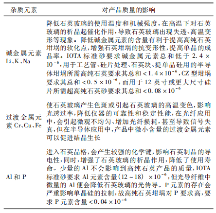 在現有加工技術下,石英原料中晶格雜質幾乎不能被除去。