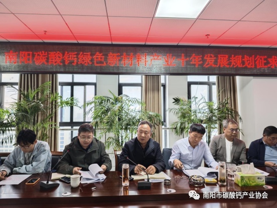 中國粉體網(wǎng)訊 11月5日,南陽市碳酸產(chǎn)業(yè)協(xié)會召開《南陽市碳酸鈣綠色新材料產(chǎn)業(yè)十年發(fā)展規(guī)劃》征求意見會。會議由南陽市碳酸鈣產(chǎn)業(yè)協(xié)會會長馬連昇主持,南召縣工信局局長李國泰出席會議并作重要講話。中國地質(zhì)科學(xué)院鄭州礦產(chǎn)綜合利用研究所郝小非博士、南陽市碳酸鈣產(chǎn)業(yè)協(xié)會21名副會長單位負(fù)責(zé)人參加會議。