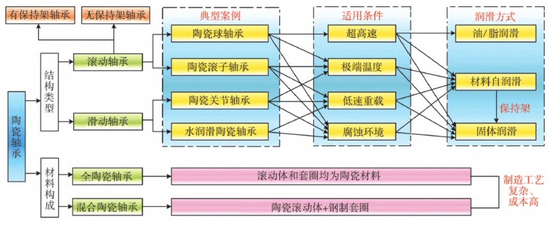 高性能陶瓷球軸承作為解決軸承在極端工況下服役的核心關(guān)鍵部件,其材料制備、設(shè)計理論精密制造工藝等關(guān)鍵技術(shù)的發(fā)展水平對陶瓷軸承在極端工況下的服役行為起決定性作用。