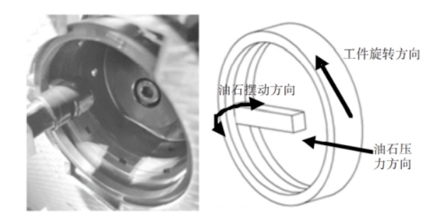 陶瓷軸承套圈溝道超精加工原理示意圖
