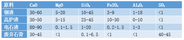 高鈣基工業(yè)固體廢物的化學(xué)組分分析單位:%(質(zhì)量分?jǐn)?shù))