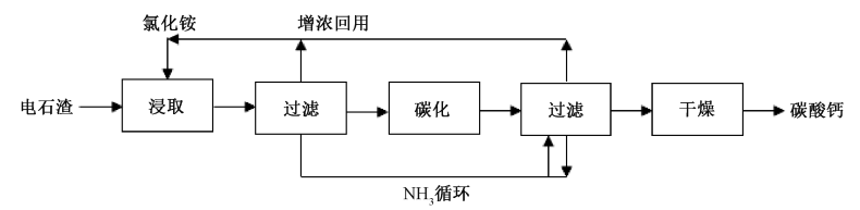 郭琳琳等分析認(rèn)為,在利用電石渣制備碳酸鈣過(guò)程中,氯化銨浸取CO2碳化工藝易于實(shí)現(xiàn)浸取劑的循環(huán)利用,同時(shí)又能利用廢氣中的CO2,具有較大的利用潛能和廣闊前景。在電石渣制備碳酸鈣的過(guò)程中,可以同時(shí)實(shí)現(xiàn)納米碳酸鈣的表面改性,并通過(guò)控制碳化溫度、加入添加劑等實(shí)現(xiàn)晶型控制,制得不同晶型和形狀的碳酸鈣產(chǎn)品。電石渣資源化應(yīng)用制備碳酸鈣,呈現(xiàn)出從低附加值向高附加值發(fā)展的趨勢(shì)。
