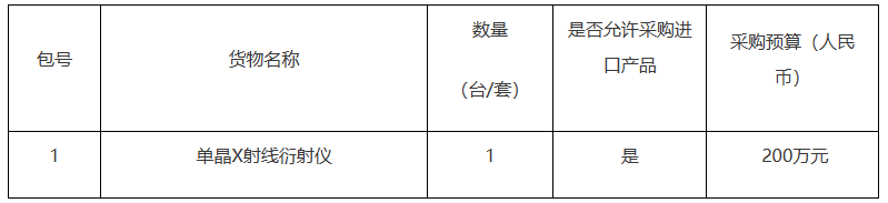 項(xiàng)目名稱:中國(guó)科學(xué)院新疆理化技術(shù)研究所單晶X射線衍射儀采購(gòu)項(xiàng)目
