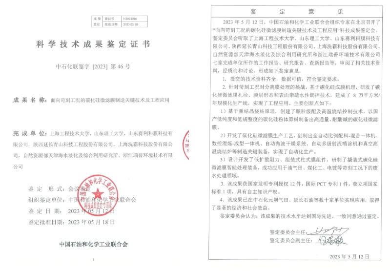 中國粉體網(wǎng)訊 2023中國石油和化學工業(yè)聯(lián)合會科學技術獎及行業(yè)專利獎獲獎名單公布,由上海洗霸科技股份有限公司聯(lián)合上海工程技術大學、山東理工大學、山東賽利科膜科技有限公司、陜西延長青山科技工程股份有限公司、自然資源部天津海水淡化與綜合利用研究所等單位共同完成的《面向苛刻工況的碳化硅微濾膜制造關鍵技術及工程應用》研究成果榮獲中國化工學會科技進步二等獎。