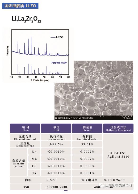 中國粉體網(wǎng)訊 石榴石型固體電解質(zhì)——鋰鑭鋯氧Li7La3Zr2O12(LLZO)作為最具市場化潛力的固態(tài)電解質(zhì)材料之一,一直吸引著眾多研究人員的關(guān)注。山東創(chuàng)魯先進(jìn)電池科技有限公司研發(fā)團隊長期致力于全固態(tài)鋰離子電池、鈉離子電池、金屬空氣電池等新能源材料方面研究,擁有豐富的全固態(tài)電池及關(guān)鍵材料研發(fā)生產(chǎn)經(jīng)驗和電池系統(tǒng)集成等方面的經(jīng)驗,其團隊對石榴石固態(tài)電解質(zhì)及其相關(guān)材料的研發(fā)和中試也一直持續(xù)進(jìn)行中。