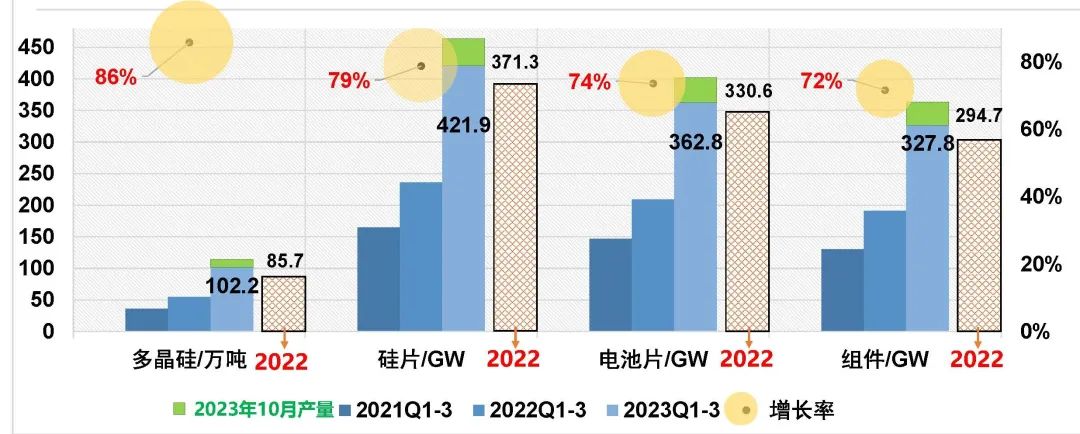 今年1-10月 我國光伏制造端(硅料、硅片、電池、組件)產(chǎn)量
