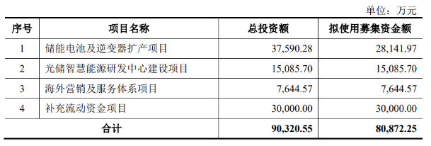 艾羅能源本次公開(kāi)發(fā)行新股4,000.0000萬(wàn)股,占發(fā)行后總股本25.00%,發(fā)行價(jià)格為55.66元/股。 本次募集資金總額為222,640.00萬(wàn)元,扣除發(fā)行費(fèi)用后本次發(fā)行募集資金凈額為198,807.45萬(wàn)元。公司募集資金凈額比原計(jì)劃多117,935.2萬(wàn)元。艾羅能源2023年12月28日披露的招股書(shū)顯示,公司擬募集資金80,872.25萬(wàn)元,用于儲(chǔ)能電池及逆變器擴(kuò)產(chǎn)項(xiàng)目、光儲(chǔ)智慧能源研發(fā)中心建設(shè)項(xiàng)目、海外營(yíng)銷及服務(wù)體系項(xiàng)目、補(bǔ)充流動(dòng)資金項(xiàng)目。