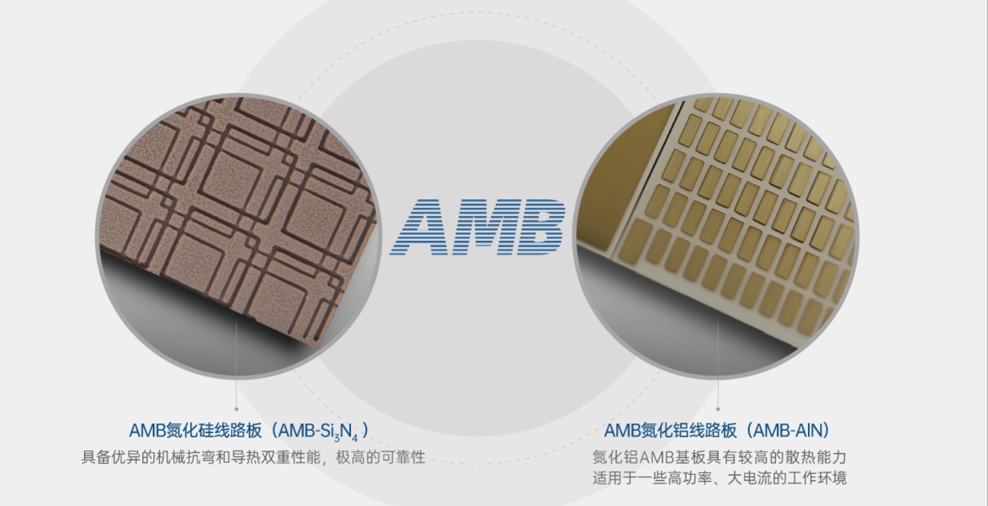 隨著第三代半導(dǎo)體技術(shù)的發(fā)展,大功率IGBT模塊對(duì)封裝材料的要求越來(lái)越高,AMB工藝陶瓷襯板逐漸成為主流。AMB技術(shù)實(shí)現(xiàn)了氮化鋁和氮化硅陶瓷與銅片的覆接,相比于傳統(tǒng)的DBC基板,采用AMB工藝制備的陶瓷基板,不僅具有更高的熱導(dǎo)率、更好的銅層結(jié)合力,而且還有熱阻更小、可靠性更高等優(yōu)勢(shì);逐步成為中高端IGBT模塊散熱電路板主要應(yīng)用類(lèi)型。產(chǎn)品廣泛應(yīng)用在新能源汽車(chē)、軌道交通、航天航空、軍防軍工、智能電網(wǎng)等高新技術(shù)領(lǐng)域。