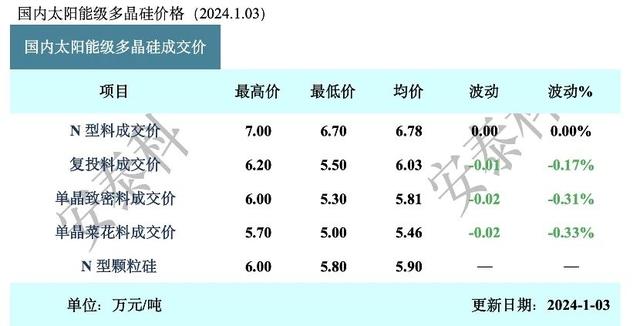 中國(guó)粉體網(wǎng)訊 1月3日,中國(guó)有色金屬工業(yè)協(xié)會(huì)硅業(yè)分會(huì)發(fā)布了太陽能級(jí)多晶硅最新成交價(jià)格。