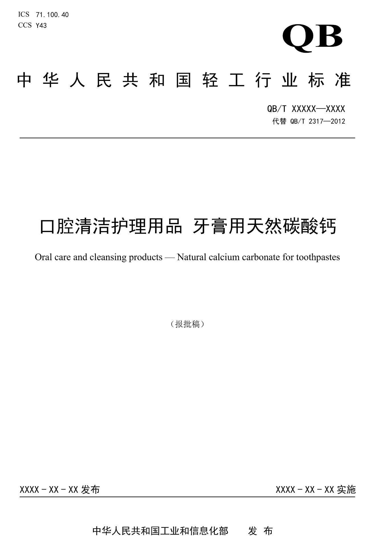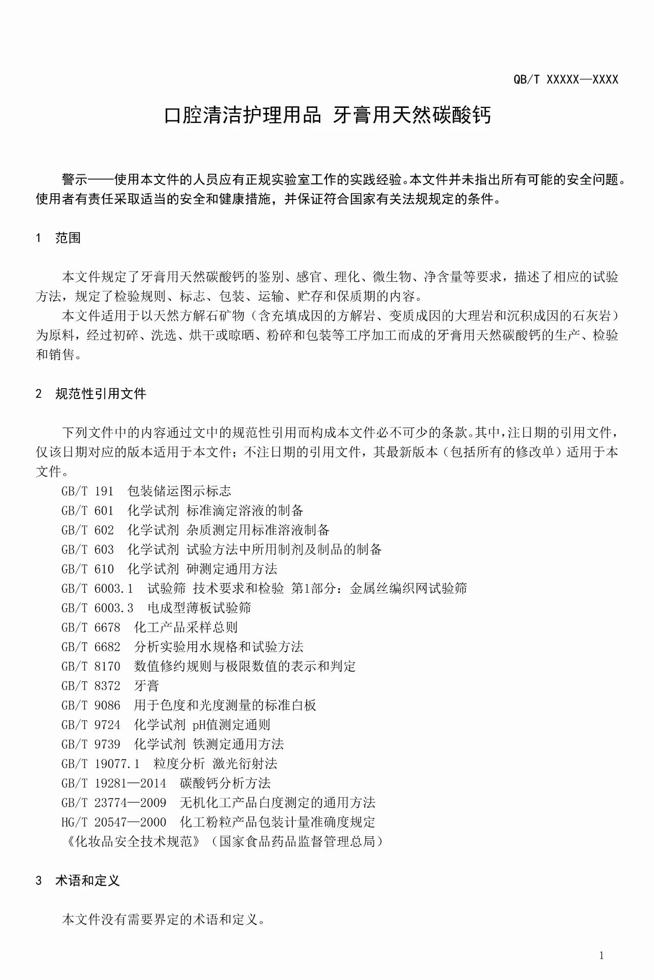 QB/T 2317-2024口腔清潔護(hù)理用品牙膏用天然碳酸鈣規(guī)定了牙膏用天然碳酸鈣的鑒別、感官、理化、微生物、凈含量等要求,描述了相應(yīng)的試驗(yàn)方法,規(guī)定了檢驗(yàn)規(guī)則、標(biāo)志、包裝、運(yùn)輸、貯存和保質(zhì)期的內(nèi)容。