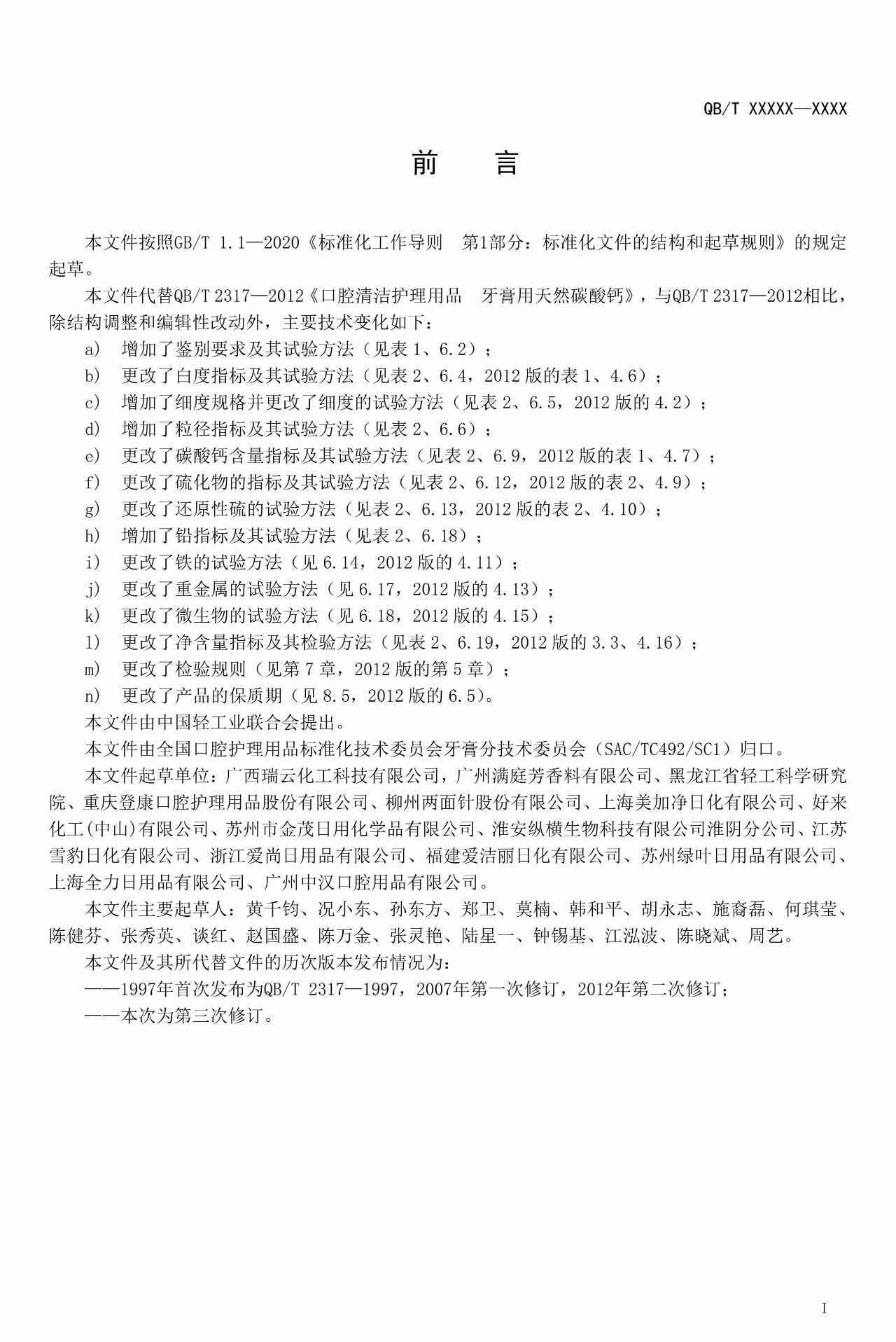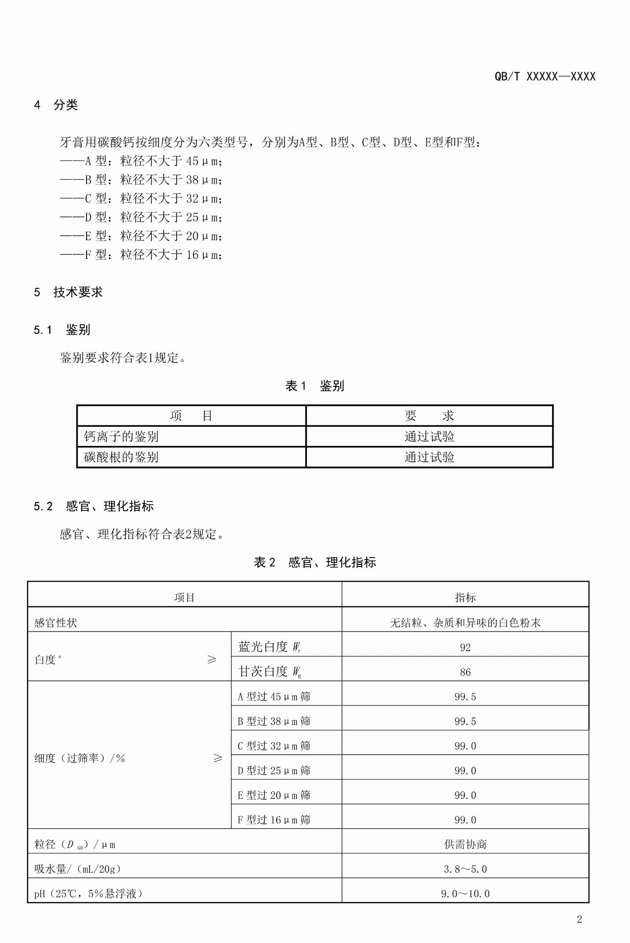 中國(guó)粉體網(wǎng)訊 近期,工信部公示了包含QB/T 2317-2024口腔清潔護(hù)理用品牙膏用天然碳酸鈣在內(nèi)的371項(xiàng)行業(yè)標(biāo)準(zhǔn)、1項(xiàng)行業(yè)標(biāo)準(zhǔn)修改單及6項(xiàng)行業(yè)標(biāo)準(zhǔn)文件。公示日期截至2024年2月8日,QB/T 2317-2024將代替QB/T 2317-2012。