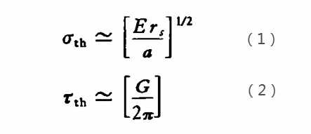 從微觀概念出發(fā),陶瓷的理論強(qiáng)度是其原子間的結(jié)合力發(fā)揮到臨界點(diǎn)時(shí)的強(qiáng)度值。根據(jù)原子一分子論,理想晶體的斷裂強(qiáng)度σth和屈服強(qiáng)度分別以式(1)和式(2)表示: