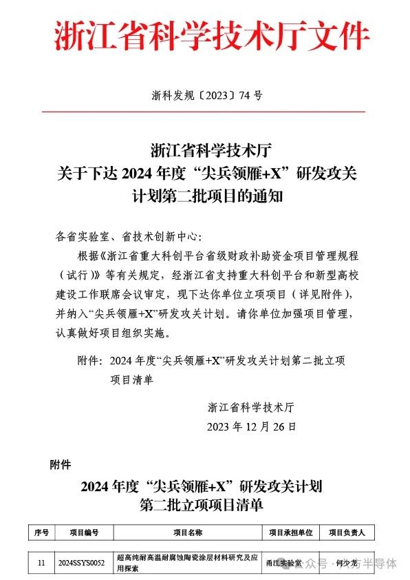 據(jù)悉,六方科技創(chuàng)始人、甬江實驗室熱場材料創(chuàng)新中心主任何少龍博士申報的項目“超高純耐高溫耐腐蝕陶瓷涂層材料研究及應(yīng)用探索”通過答辯,被納入“尖兵領(lǐng)雁”研發(fā)攻關(guān)計劃,獲得浙江省重大科創(chuàng)平臺省級財政補助資金2000萬。