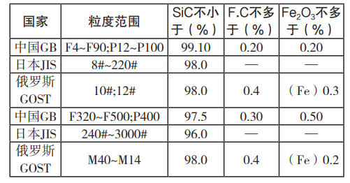 中國(guó)國(guó)家標(biāo)準(zhǔn)GB與日本JIS、俄羅斯GOST標(biāo)準(zhǔn)綠碳化硅化學(xué)成分對(duì)比