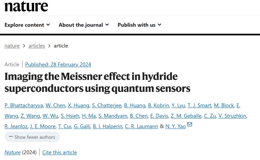 中國粉體網(wǎng)訊 近日,吉林大學(xué)物理學(xué)院黃曉麗教授等人與美國加州大學(xué)伯克利分校、勞倫斯伯克利國家實(shí)驗(yàn)室、哈佛大學(xué)的NormanYao教授團(tuán)隊(duì)合作,在高壓下超導(dǎo)富氫化物的超導(dǎo)電性實(shí)驗(yàn)研究方面取得了重大突破,利用金剛石氮-空位色心(NVcenter)量子傳感技術(shù),成功實(shí)現(xiàn)超高壓下富氫化合物的邁斯納效應(yīng)實(shí)驗(yàn)測(cè)量。這一重大研究成果以“Imaging the Meissner effect inhydride superconductors using quantum sensors”為題,于2024年2月28日發(fā)表在Nature上。在同期Nature上,香港科技大學(xué)的楊森教授等人以“Quantum sensor.settles debate about superconductivity in hydrides”為題進(jìn)行了亮點(diǎn)評(píng)述。