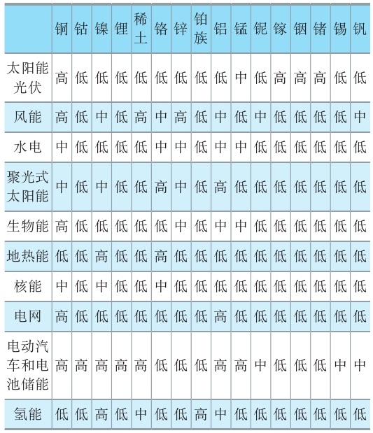 各種清潔能源發(fā)展對關鍵礦產需求程度