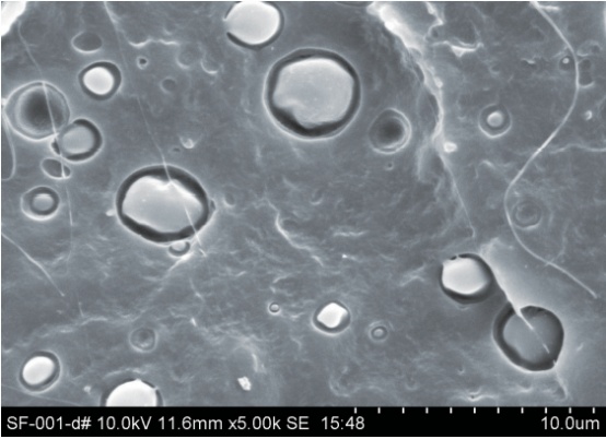 (2)顆粒粒徑過大或球形化程度差,會造成流延后膜內(nèi)的孔隙變大,導致透氣膜透水,嚴重時可能會產(chǎn)生斷膜。況且顆粒過大將會影響自身性能。