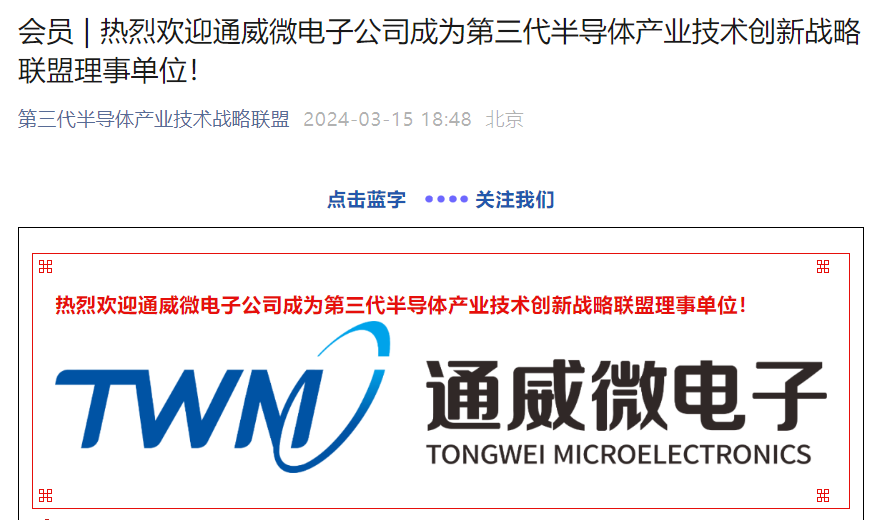 中國粉體網(wǎng)訊 近日,第三代半導(dǎo)體產(chǎn)業(yè)技術(shù)戰(zhàn)略聯(lián)盟消息,通威微電子有限公司已正式加入聯(lián)盟并成為理事單位。