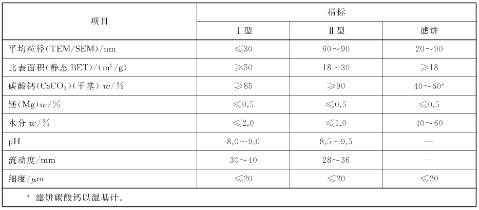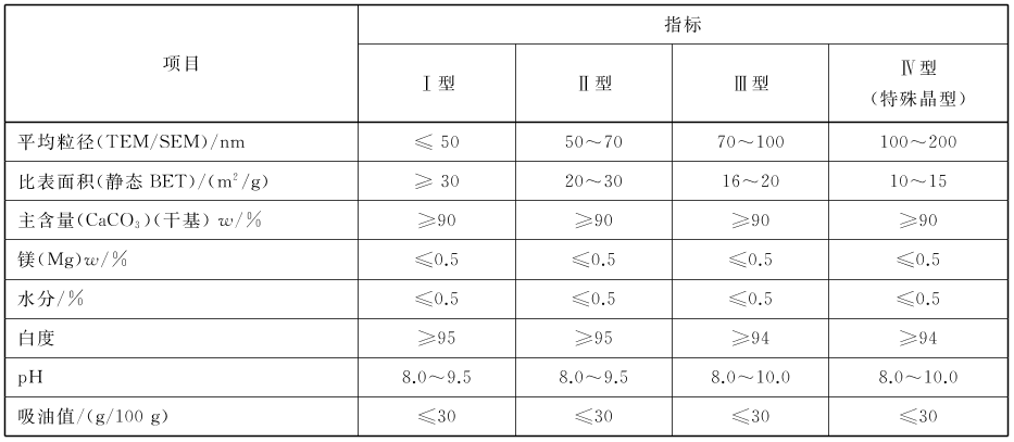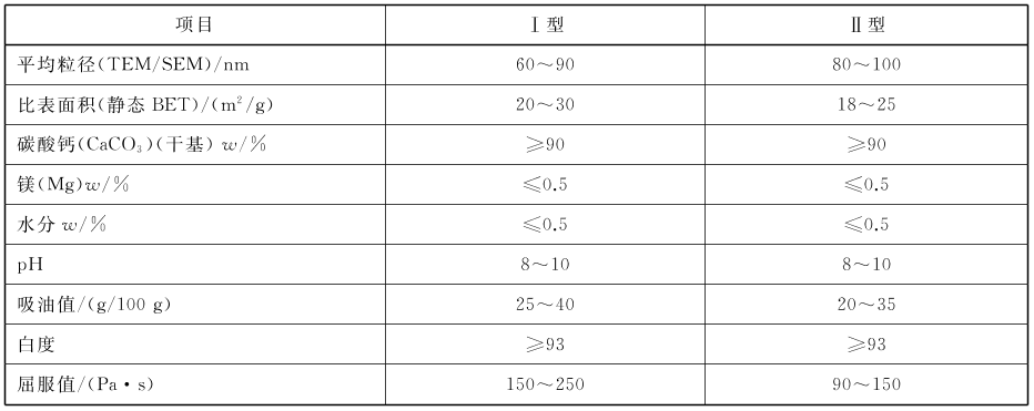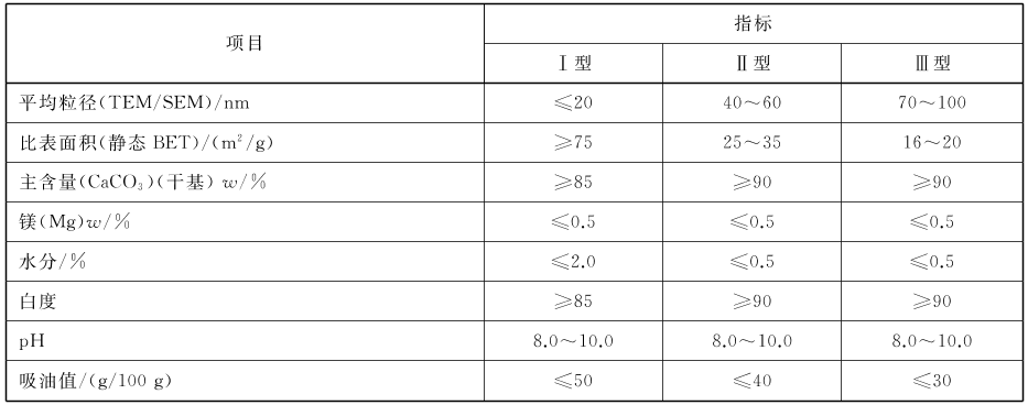 橡膠用納米碳酸鈣推薦指標(biāo)