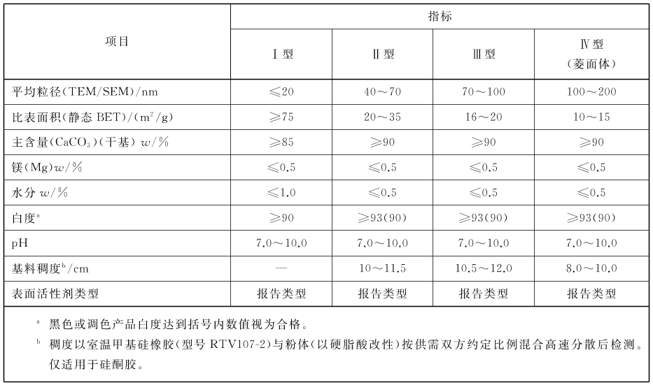 密封膠、膠黏劑用納米碳酸鈣推薦指標(biāo)