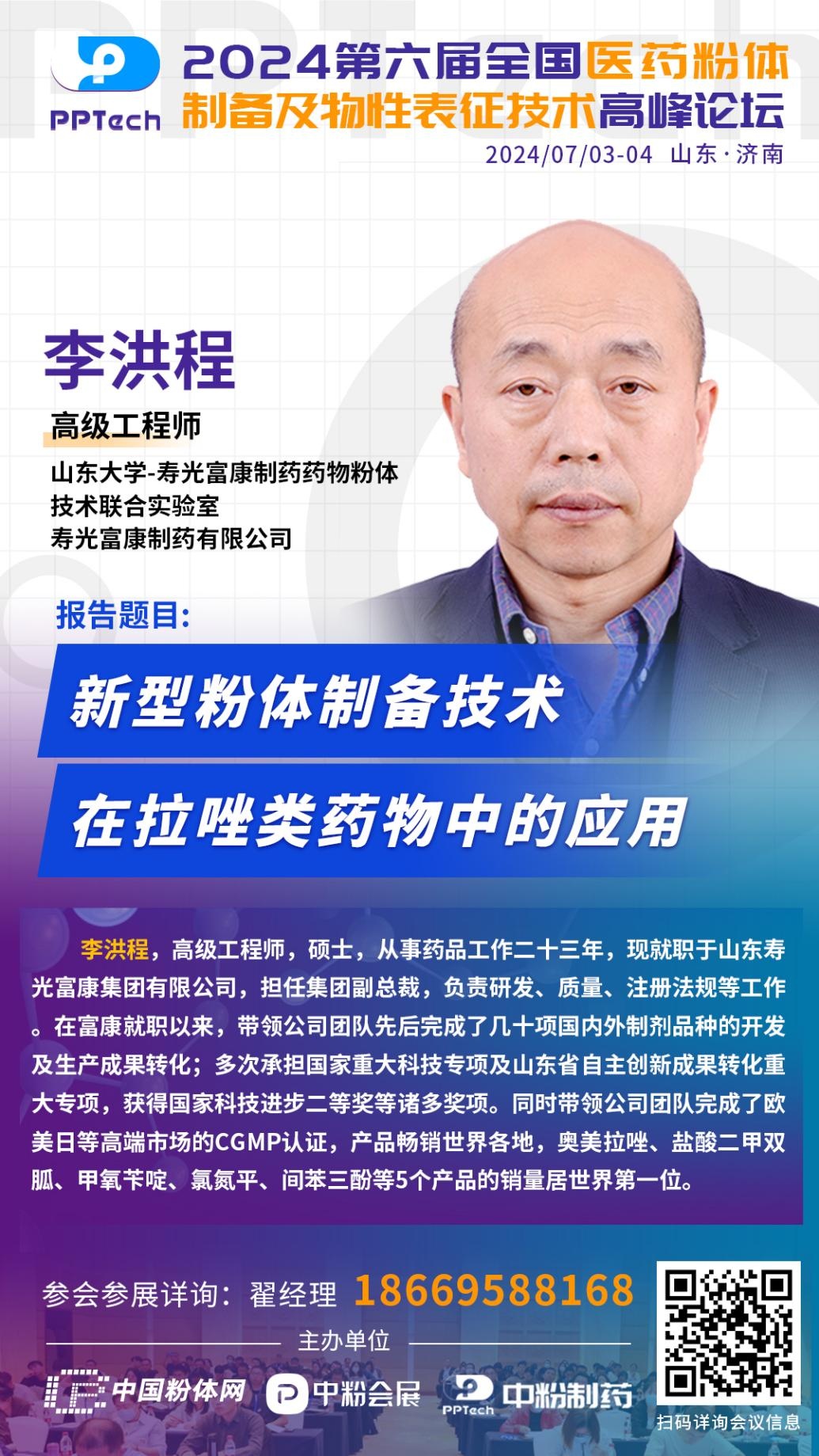 2024年7月3-4日,中國(guó)粉體網(wǎng)以“從粉體技術(shù),論制藥工藝”為主題,將在山東的濟(jì)南中海凱驪酒店舉辦“第六屆全國(guó)醫(yī)藥粉體制備及物性表征技術(shù)高峰論壇”,屆時(shí)來(lái)自山東壽光富康集團(tuán)有限公司李洪程集團(tuán)副總裁將作《新型粉體制備技術(shù)在拉唑類藥物中的應(yīng)用》報(bào)告,針對(duì)拉唑類高變異藥物制劑工藝要求極高的重大產(chǎn)業(yè)化難題,報(bào)告主講人利用山東大學(xué)-壽光富康制藥藥物粉體技術(shù)聯(lián)合實(shí)驗(yàn)室的研發(fā)能力,應(yīng)用新型結(jié)晶技術(shù)、多單元微丸系統(tǒng)技術(shù)和新型多層上藥微丸包衣技術(shù)等先進(jìn)技術(shù),改善制劑粉體性質(zhì)與晶型,有效增加藥物穩(wěn)定性,提高粉體流動(dòng)性,改善粉體粘附性,精準(zhǔn)控制藥物釋放行為,獲得高質(zhì)量拉唑類藥物制劑,提高生物等效性成功概率。