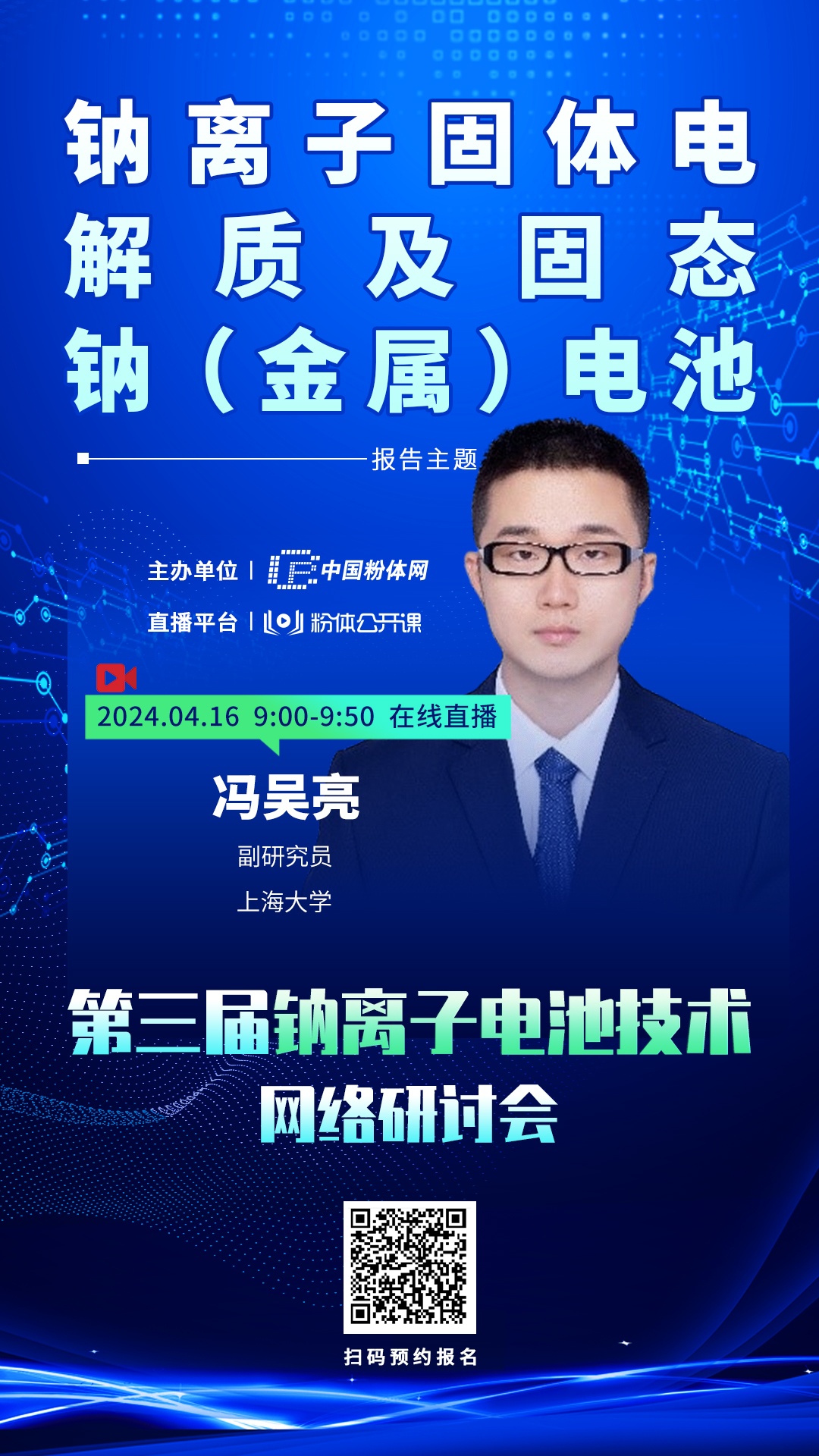 粉體公開課將于4月16號組織召開第三屆鈉離子電池技術網(wǎng)絡研討會,共同探討最新產(chǎn)業(yè)技術發(fā)展動態(tài)。特邀上海大學馮吳亮副研究員帶來:鈉離子固體電解質(zhì)及固態(tài)鈉(金屬)電池