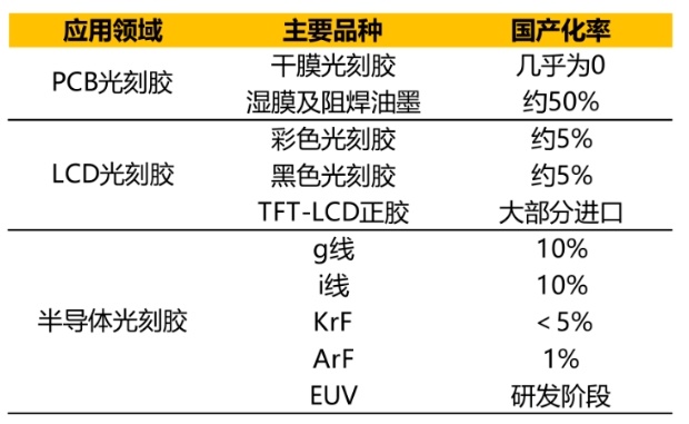 我國(guó)光刻膠國(guó)產(chǎn)化率情況,來源:晶瑞電材公告,太平洋證券研究院