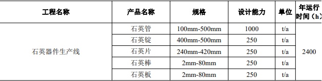 為適應(yīng)新的形勢要求,在此背景下,建設(shè)單位擬投資3000萬元,租賃9000平方米廠房建設(shè)年產(chǎn)2000噸光伏及半導(dǎo)體用石英器件生產(chǎn)線。購置切割機、加工中心、磨床、玻璃加工車床、二次成型車床、拋光機、退火爐、清洗槽等設(shè)備,采用相應(yīng)規(guī)格高純石英管、棒、片、板、錠等→清洗→修理→退火→成型→焊接→機加工→切割→打磨→拋光→清洗→酸浸→清洗→烘干→包裝入庫等工藝流程,項目建成后可形成年產(chǎn)2000噸光伏及半導(dǎo)體用石英器件的生產(chǎn)能力。