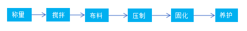 目前國(guó)內(nèi)外關(guān)于人造石英石的生產(chǎn)工藝大致相同,主要包括原料稱量、攪拌、布料、壓制、固化、養(yǎng)護(hù)、定厚、拋光以及切割等工序。人造石英石產(chǎn)品的生產(chǎn)工藝可分為壓線生產(chǎn)線和磨線生產(chǎn)線。壓線、磨線分區(qū)生產(chǎn)可使石英石板材在生產(chǎn)過(guò)程免受污染,因?yàn)閭鹘y(tǒng)的磨線生產(chǎn)過(guò)程會(huì)產(chǎn)生大量顆粒物,影響壓線生產(chǎn)質(zhì)量。分區(qū)生產(chǎn)或許更能解決產(chǎn)品批次問(wèn)題。