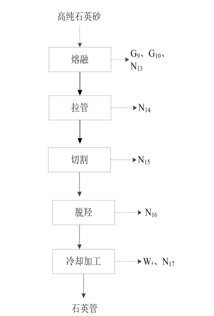 熔融:以擬建項(xiàng)目廠內(nèi)生產(chǎn)高純石英砂為原料,將原材料投入連熔爐中,加熱至高溫熔融狀態(tài),形成石英玻璃液。