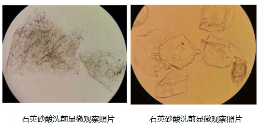 (2)洗酸不徹底,表面酸殘留在石英顆粒表面也會造成泛黃;