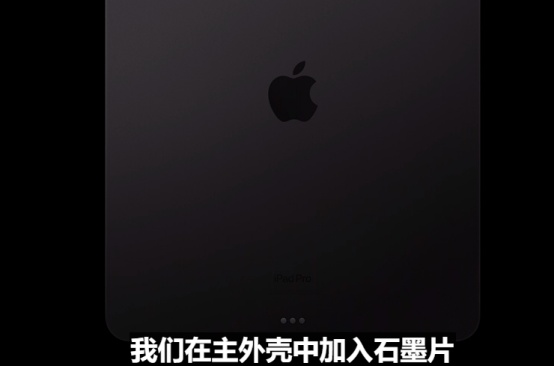 帶著疑問,小編對蘋果發(fā)布會的相關片段反復聽了幾遍,為避免因英語聽力不過關而帶來的誤判,小編還特意找到蘋果的中文網(wǎng)站“Apple (中國)”,并在該網(wǎng)站找到相關發(fā)布會視頻,慶幸的是該官方視頻已經(jīng)配上了中文字幕,可以清醒的看到,官方強調(diào)的是iPad Pro在主外殼中加入了“石墨片”,而不是相關媒體宣傳的“石墨烯導熱膜”。