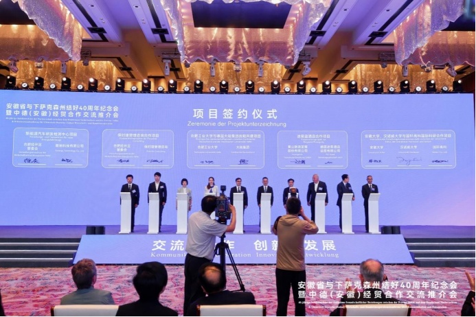 依據(jù)國軒高科研發(fā)團(tuán)隊的雄厚實力,在當(dāng)日下午舉行的安徽省與下薩克森州結(jié)好40周年紀(jì)念會暨中德(安徽)經(jīng)貿(mào)合作交流推介會上,國軒高科與漢諾威大學(xué)、安徽大學(xué)聯(lián)合簽署了有關(guān)科研合作和聯(lián)合人才培養(yǎng)的協(xié)議。李縝董事長表示:“作為兩國州省結(jié)好的受益者,國軒高科有幸與哥廷根大學(xué)、漢諾威大學(xué)合作,與德國大眾汽車攜手,用材料科學(xué)和數(shù)字科學(xué),把中國的電池技術(shù)帶到德國,實現(xiàn)國軒技術(shù)與德國品質(zhì)的完美結(jié)合。未來將共同打造科技文明的共同底座,共同開啟又一次能源文明,共同創(chuàng)造風(fēng)光無限的未來!