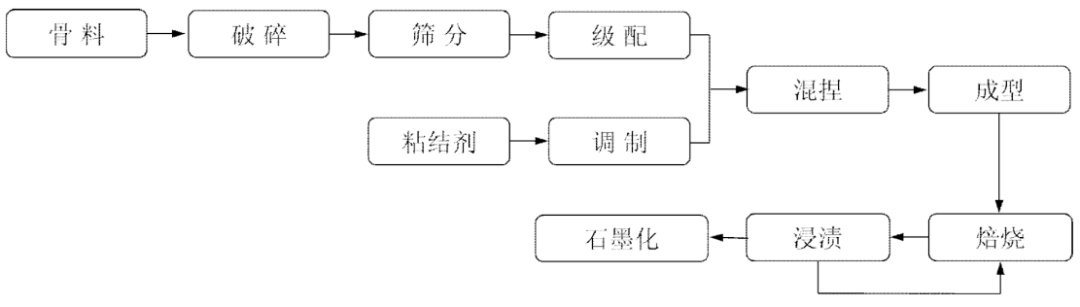 通過焙燒使成型好的坯料炭化,其主要作用是使骨料、粘結(jié)劑和浸漬劑轉(zhuǎn)化為固定炭。炭化一般在保護(hù)性氣氛中進(jìn)行,炭化溫度根據(jù)產(chǎn)品要求有所不同,一般在800℃-1500℃。工業(yè)生產(chǎn)中由于產(chǎn)品尺寸較大,炭化時(shí)間一般很長,在320h以上,甚至達(dá)到900h或更長。
