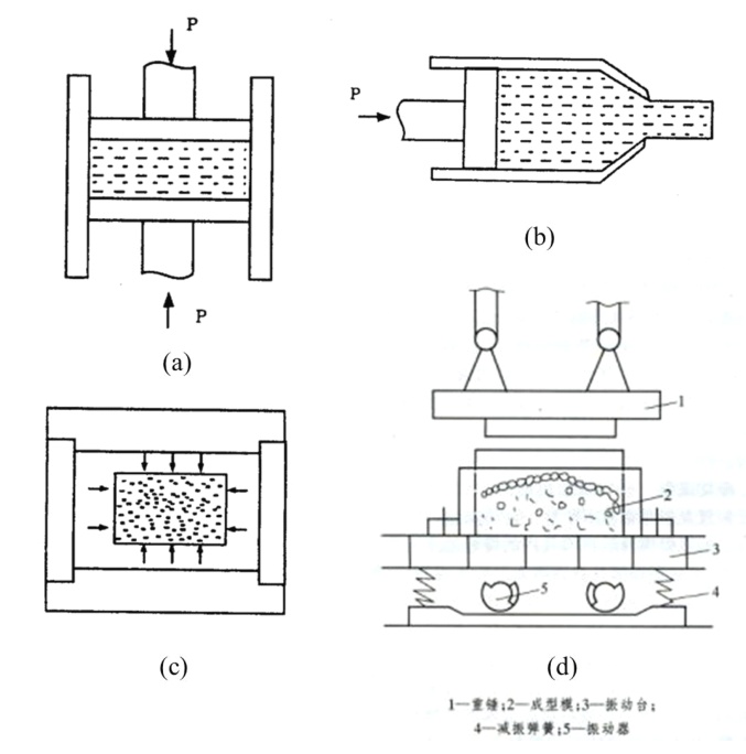 (a) 模壓成型(b)擠壓成型(c)等靜壓成型(d)振動(dòng)成型