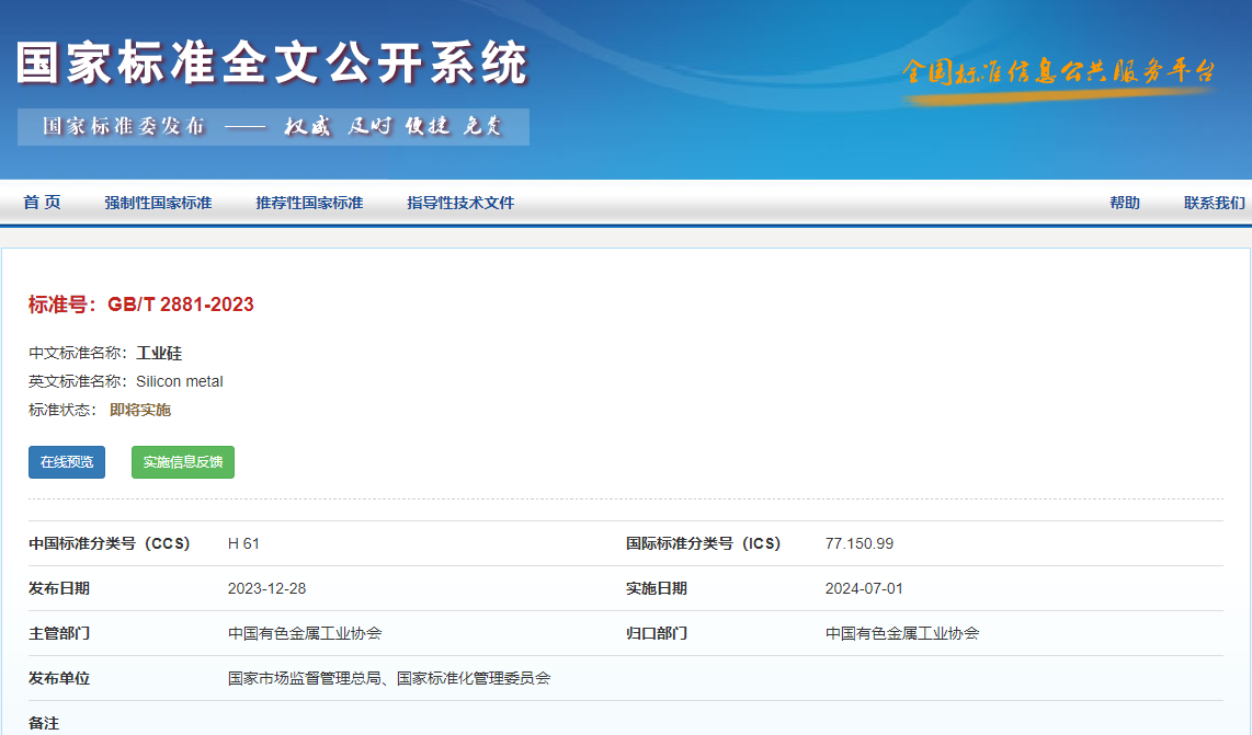 國家標(biāo)準(zhǔn)《工業(yè)硅》由TC243(全國有色金屬標(biāo)準(zhǔn)化技術(shù)委員會(huì))歸口,TC243SC1(全國有色金屬標(biāo)準(zhǔn)化技術(shù)委員會(huì)輕金屬分會(huì))執(zhí)行,主管部門為中國有色金屬工業(yè)協(xié)會(huì)。