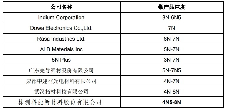 行業(yè)知名廠商高純銦生產(chǎn)水平