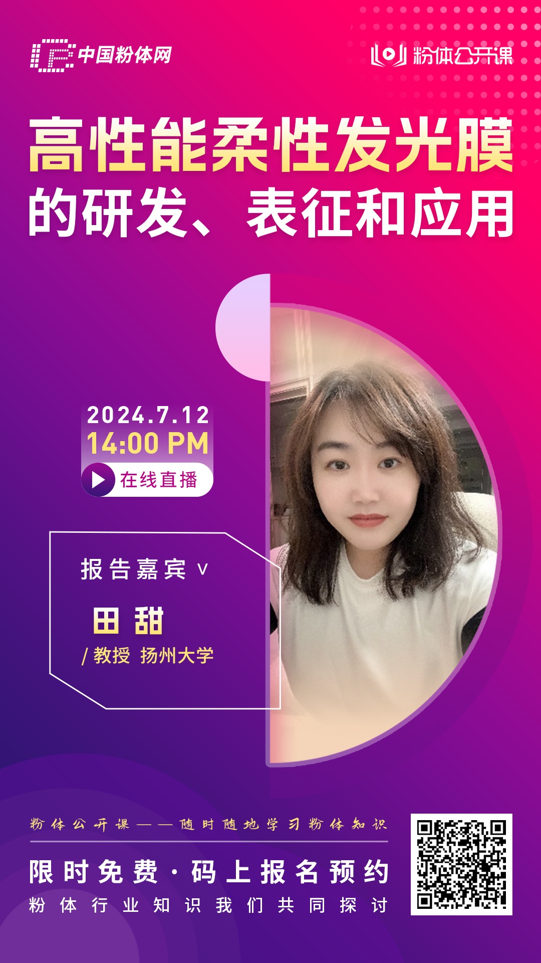 粉體公開課特邀揚州大學田甜教授帶來精彩報告:高性能柔性發(fā)光膜的研發(fā)、表征和應(yīng)用,歡迎大家掃碼預約觀看!