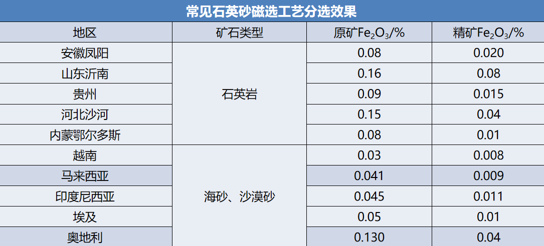 常見石英砂磁選工藝分選效果