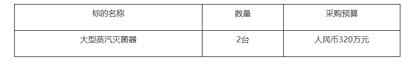 (1)標(biāo)的名稱:大型蒸汽滅菌器