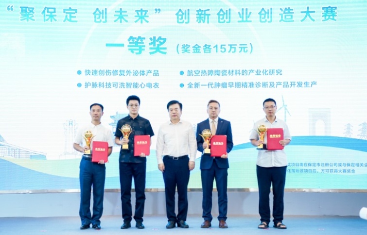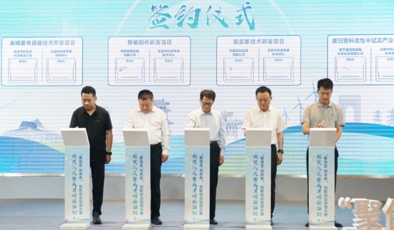 活動(dòng)現(xiàn)場(chǎng),還為本屆大賽落地項(xiàng)目舉辦了集中簽約儀式!航空熱障陶瓷材料的產(chǎn)業(yè)化研究”項(xiàng)目與保定市高新區(qū)簽約。