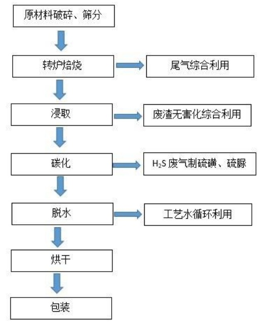 碳酸鋇的生產(chǎn)工藝為碳還原法,重晶石礦與碳在約1,000℃下還原反應(yīng)生成硫化鋇和二氧化碳,所得硫化鋇加入熱水浸取,過(guò)濾后分離出固體雜質(zhì),所得濾液為硫化鋇溶液,通入二氧化碳沉淀碳酸鋇,離心分離干燥得到碳酸鋇產(chǎn)品,產(chǎn)生的硫化氫氣體通過(guò)克勞斯法可進(jìn)一步制得副產(chǎn)品硫磺、硫脲。